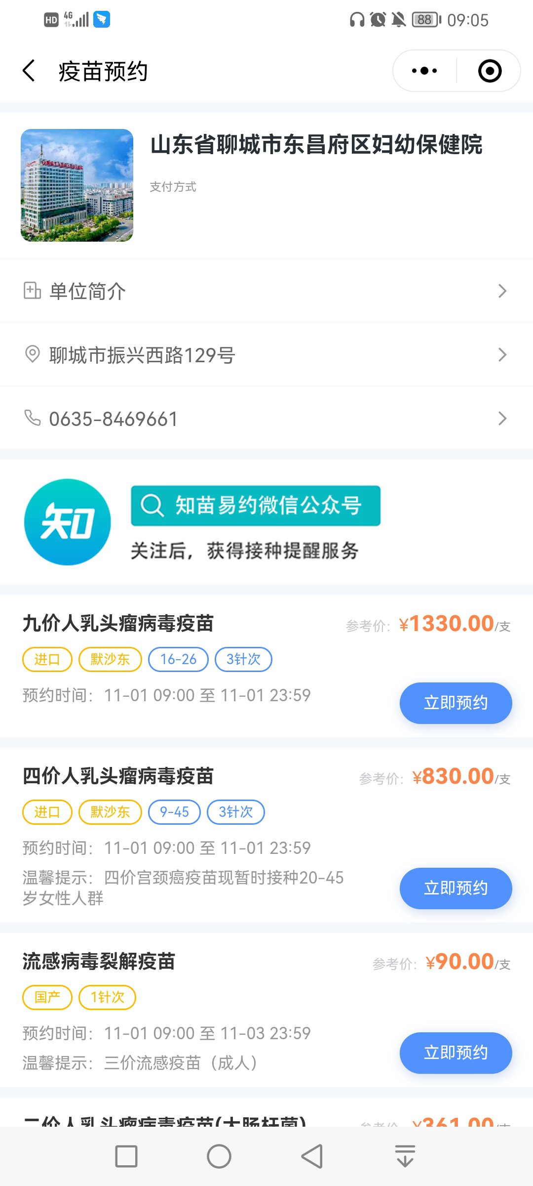 聊城东昌府区妇幼保健院九价疫苗接种流程