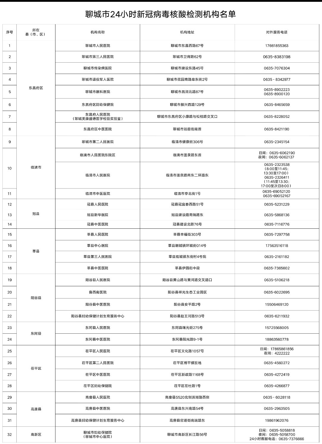 这32家医疗机构包括聊城市人民医院、聊城市传染病医院等市级医院和各县人民医院,其中31家医院开设了发热门诊,市民有需要的话可以前往就医。