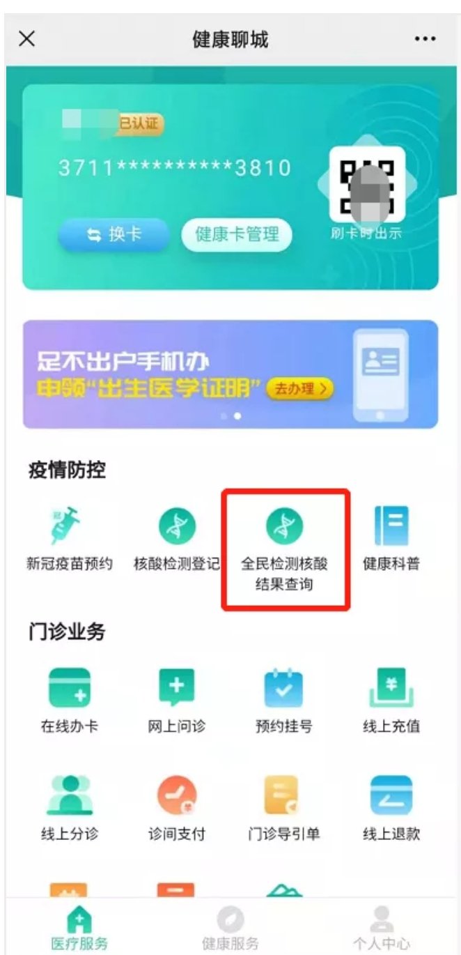 聊城核酸检测结果查询流程如下: