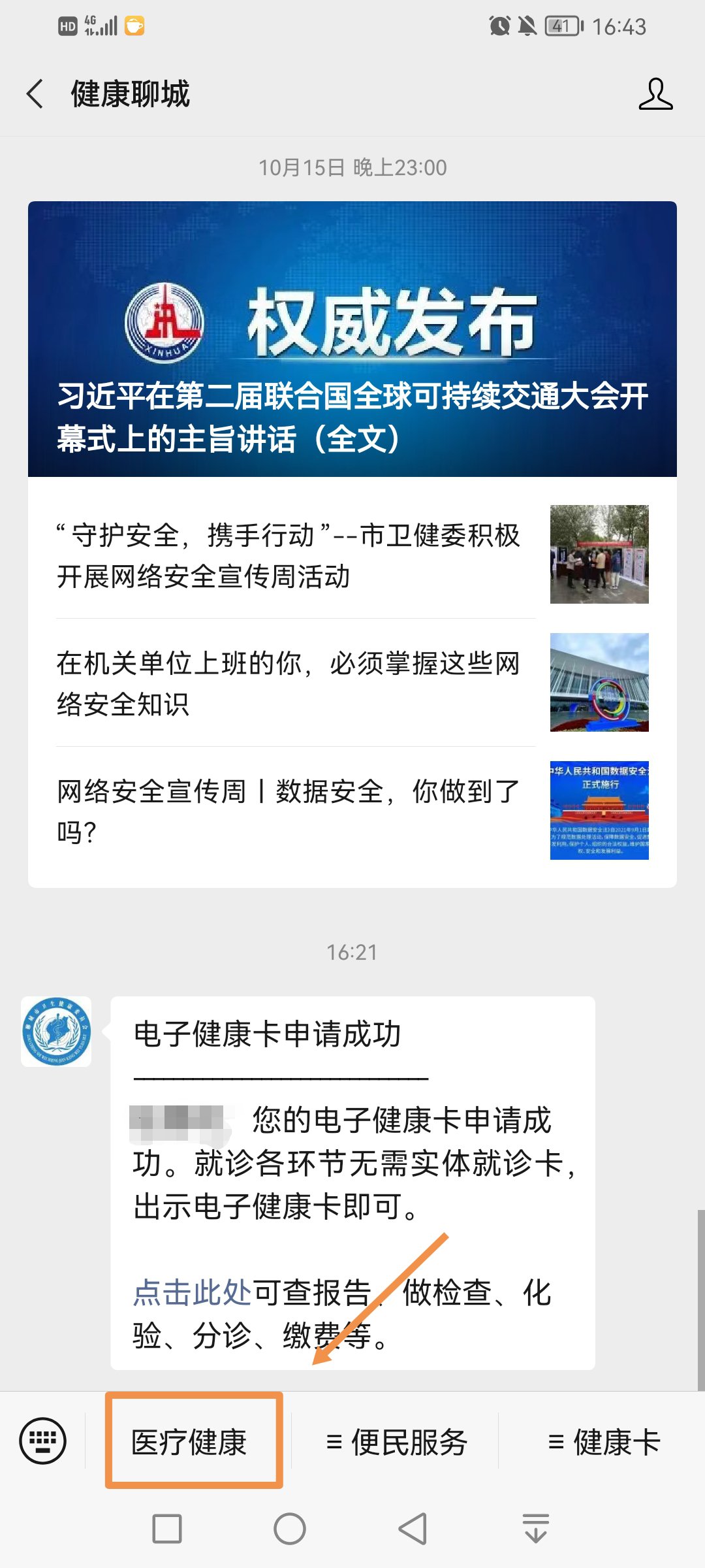 1、关注【健康聊城】公众号,进入页面