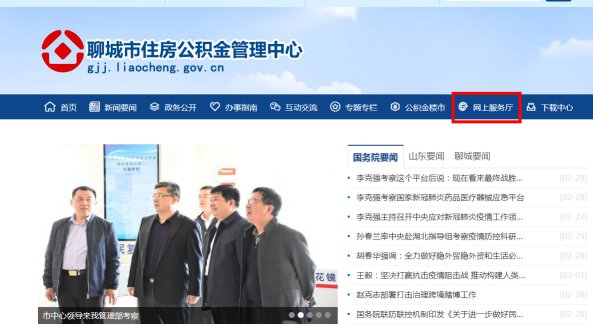 1、登录聊城市住房公积金管理中心官网(点此进入),点击“网上服务厅”,进入公积金网上服务厅登录页面。