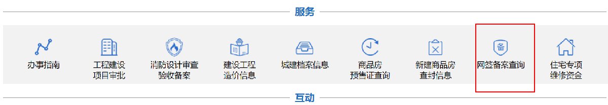 第二步:首页下拉至底部找到【服务】专栏,可看到【网签备案查询】,选择您所需要的界面点击进区即可查看相关信息。