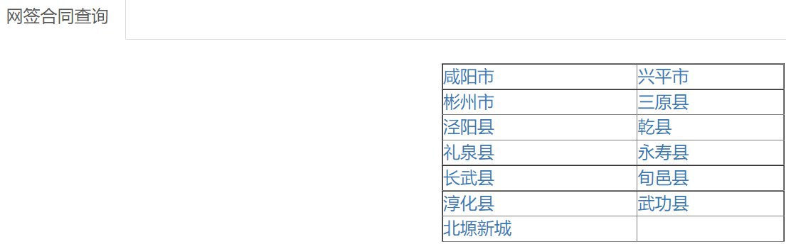 第三步:如点击进入【网签备案查询】,界面依次点击进入咸阳各区县界面入口,如选择咸阳市,点击进入则会显示【商品房网签合同查询】