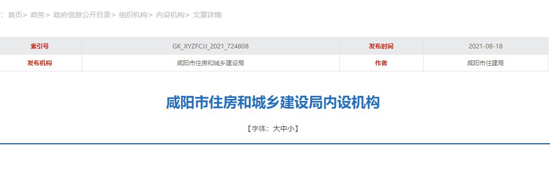 咸阳市住房和城乡建设局内设机构