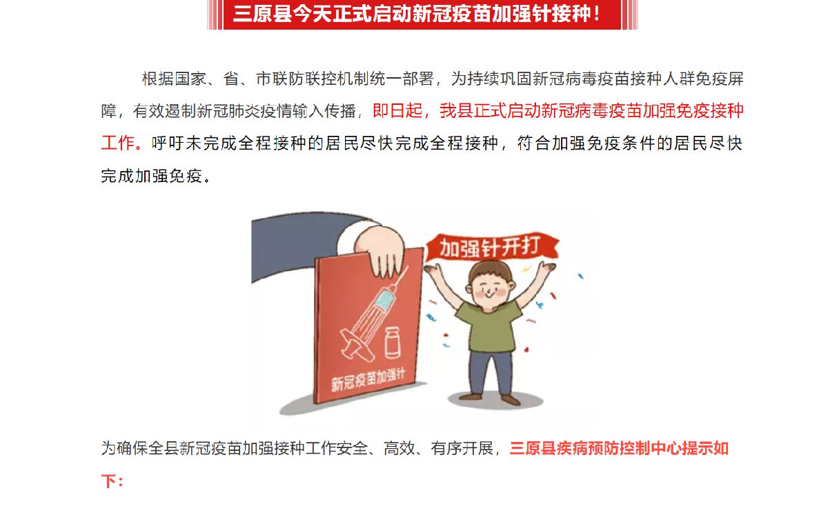 咸阳市三原县从10月18日起全面启动新冠病毒疫苗加强免疫工作。