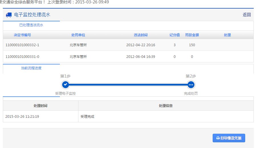 用户可以在页面上点击【打印】按钮打印处罚决定书。已经开通在线支付的地区,可以点击【在线支付】按钮,跳转至支付平台进行缴款。