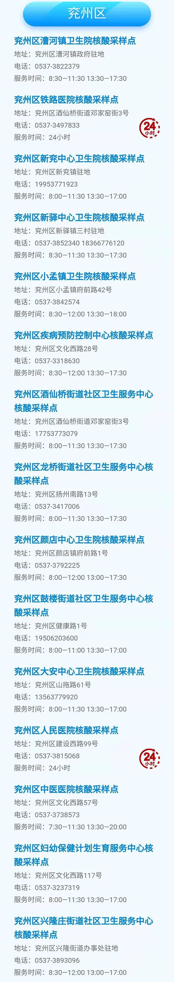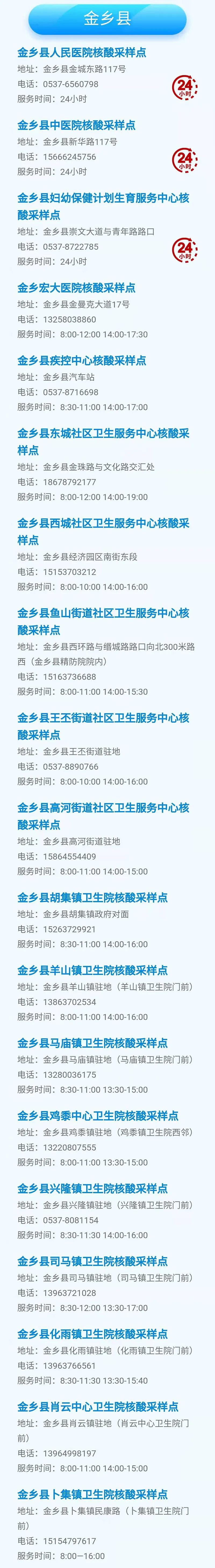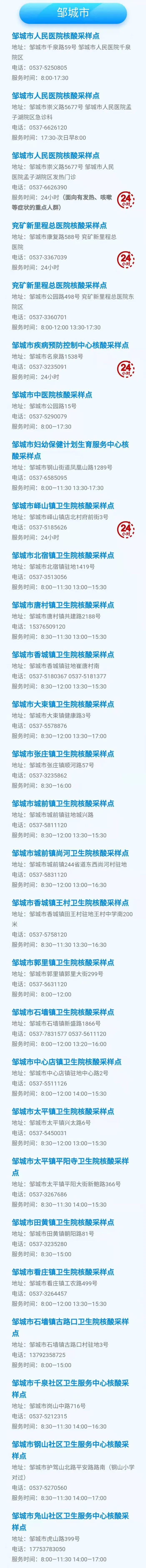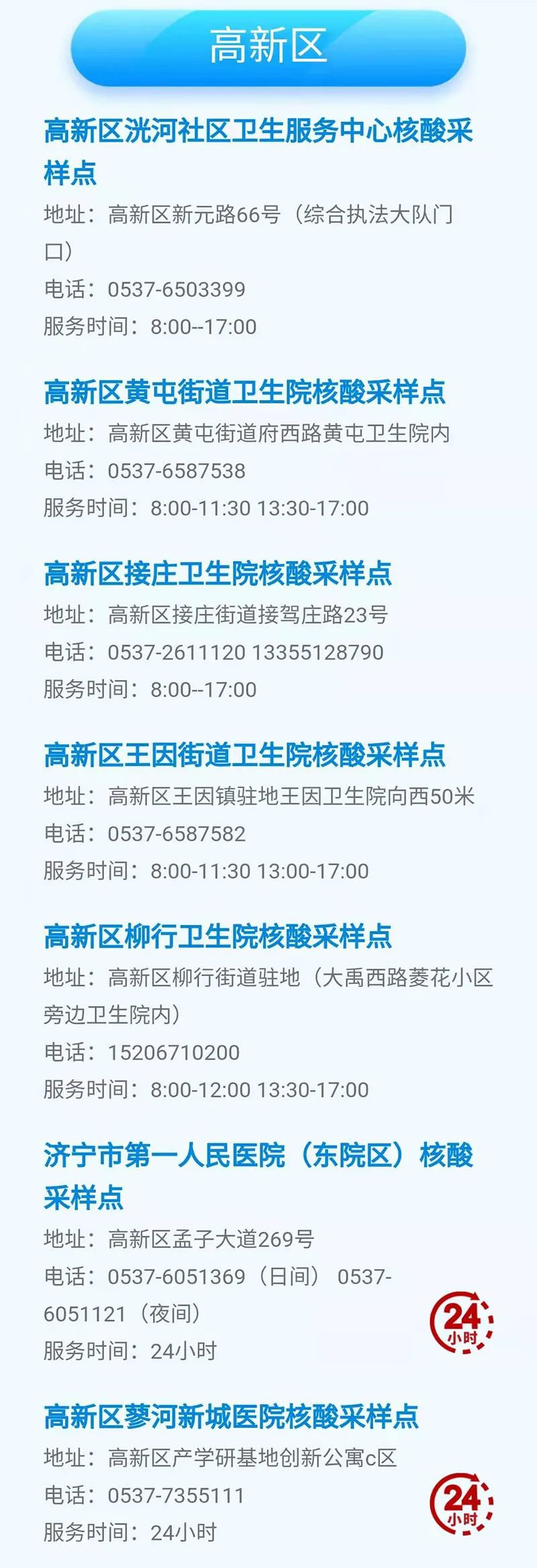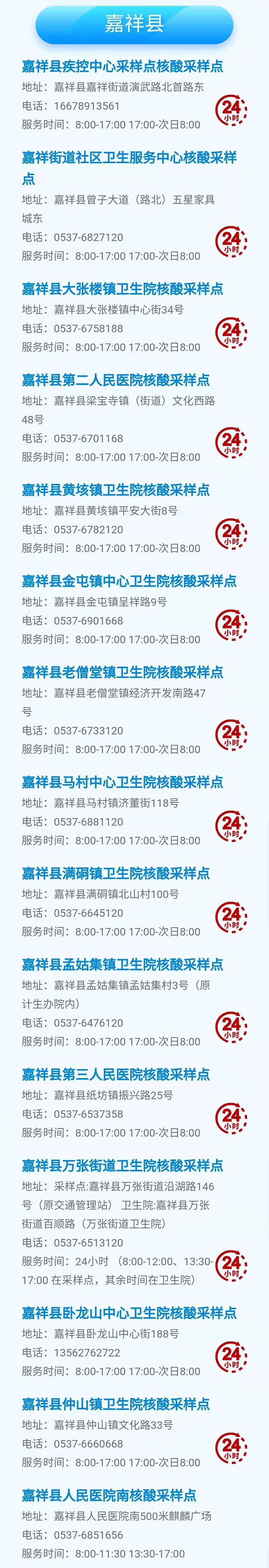 济宁市可提供24小时采样服务新冠病毒核酸检测采样点名单