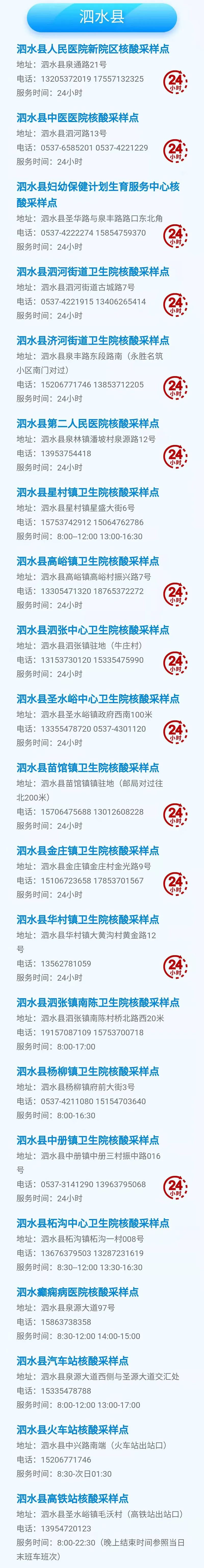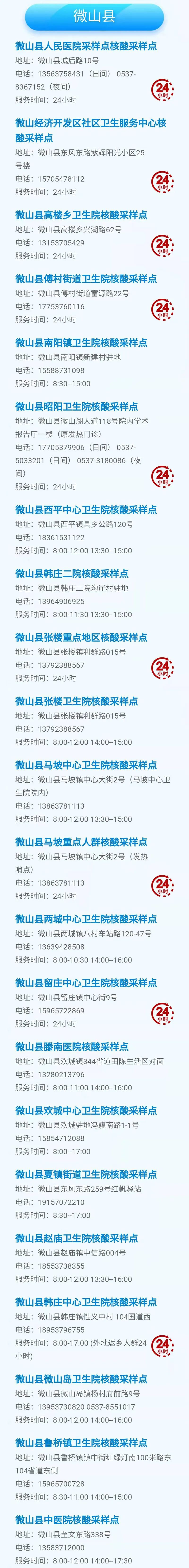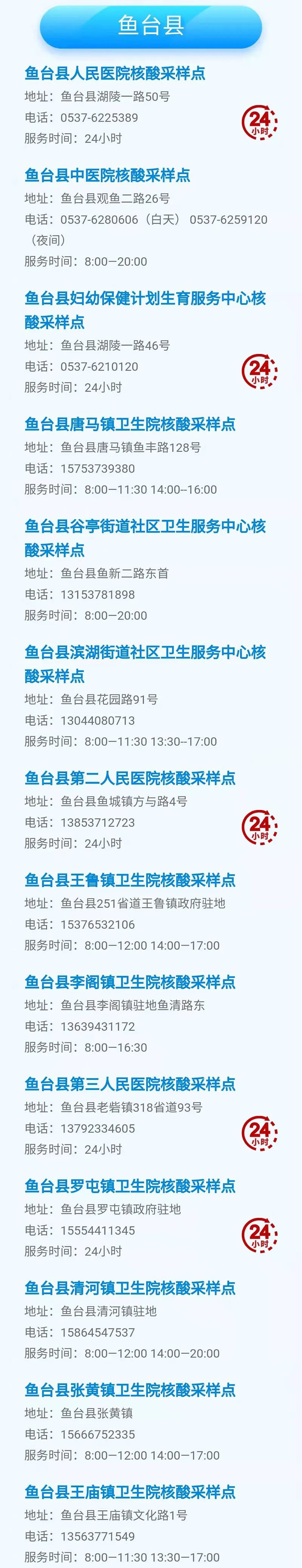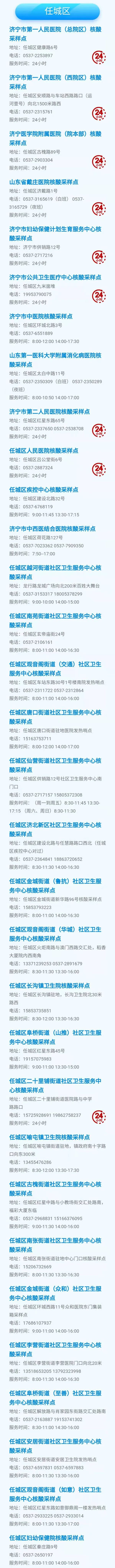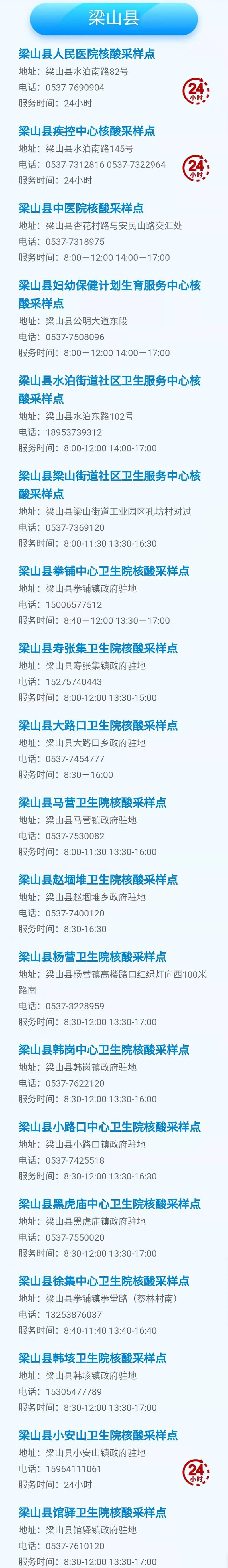 济宁市可提供24小时采样服务新冠病毒核酸检测采样点名单