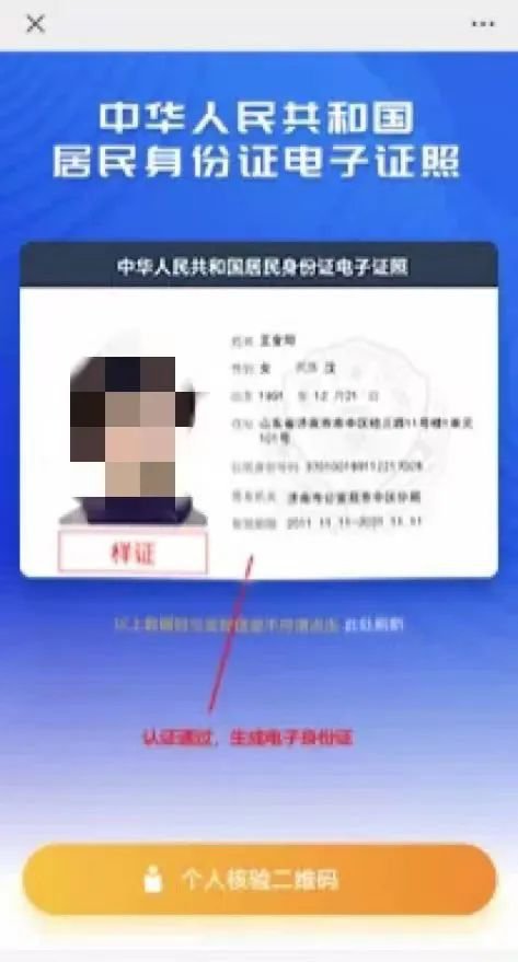 第三步:身份认证通过后,即可生成与本人实体有效身份证信息完全一致的电子证照,进行“亮证”。