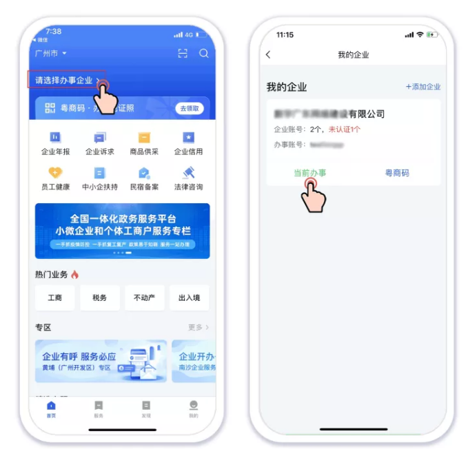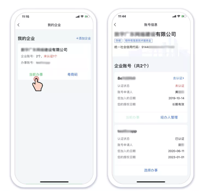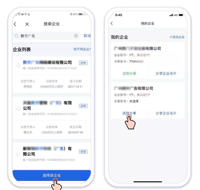 个人实名刷脸登录后,需注册、登录企业账号方可办理涉企业务。