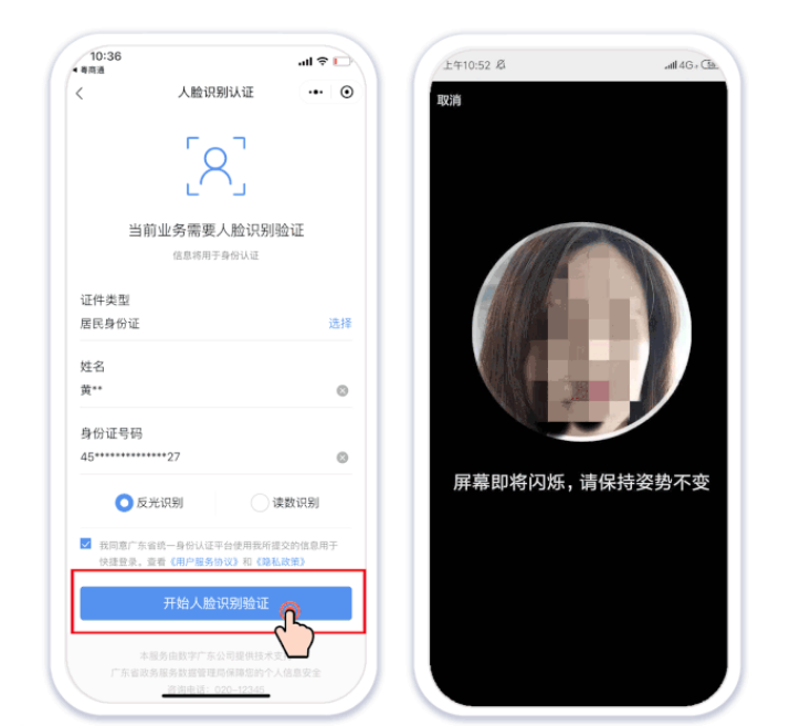 在“粤商通”APP办理涉企业务,需要经办人先通过刷脸方式注册 、登录个人账号,提交实名身份信息。