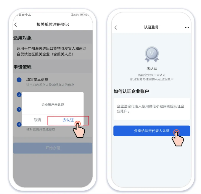 部分业务只有已认证的企业账号才能办理。经办人可发送认证链接给法定代表人,邀请其本人刷脸认证,提升账号可信等级,获得业务办理权限。