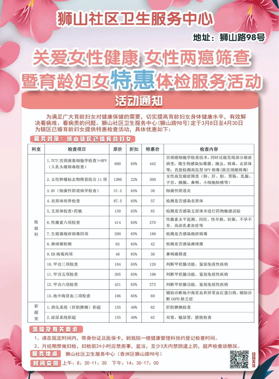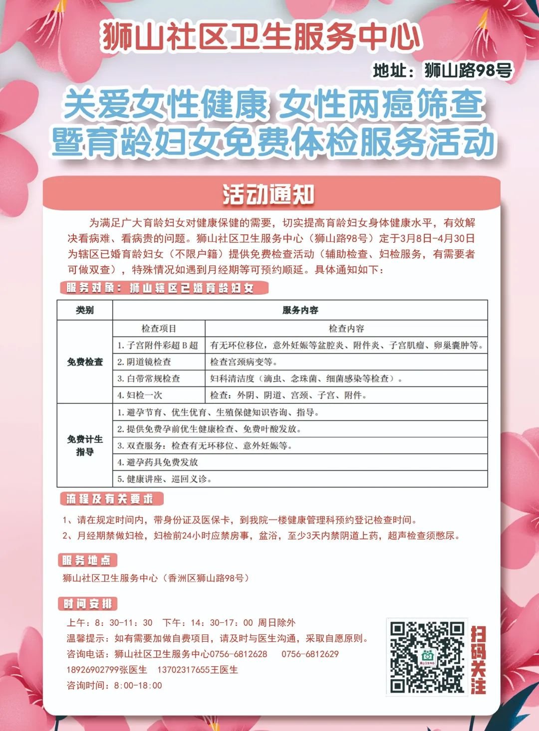 珠海市狮山社区卫生服务中心免费两癌筛查活动详情