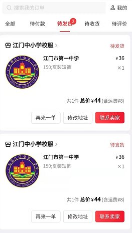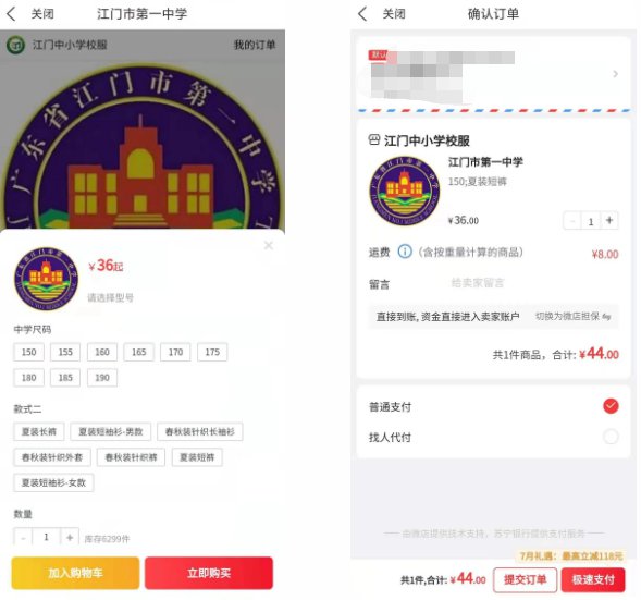 ②搜索学校进入选购校服,可选择校服型号及数量;