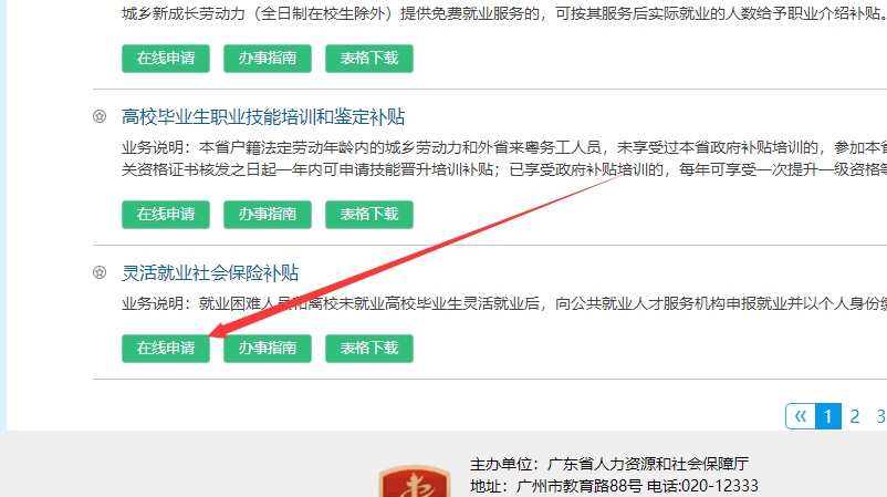 (一)窗口或网上申请:本补贴项目按季度或半年申请,申请单位应在每季度或半年后首月15日前(各地市可根据实际情况调整),在广东省就业创业专项资金补贴申报平台网上填写《社会保险补贴(灵活就业)申请表》。打印后签名盖章,持申请资料到受理机构提出申请;或将签名盖章的申请表和所需申请资料拍照上传系统,通过网上提交受理机构办理。