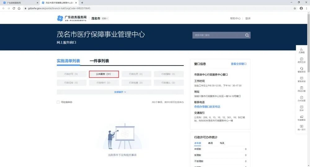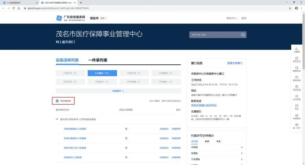 2、点击【显示更多】后,选中【茂名市医疗保障事业管理中心】