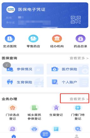 (二)“业务办理”中点击“查看更多”,后点击“居民医保停保”进入操作页面。