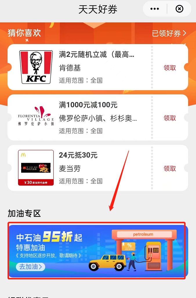 ②点击“加油专区”。