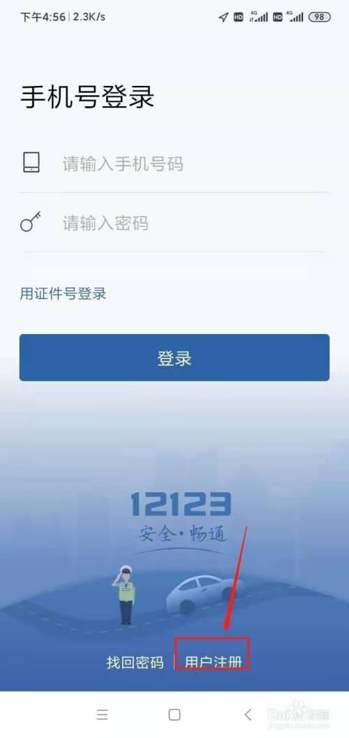 下载交管12123app,点击app进入登录首页。