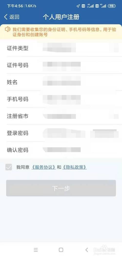 点击下方的【用户注册】,输入必须的信息,如证件类型证件号码、姓名、手机号等等信息,然后点击下一步,然后设置图案解锁密码即可完成注册。