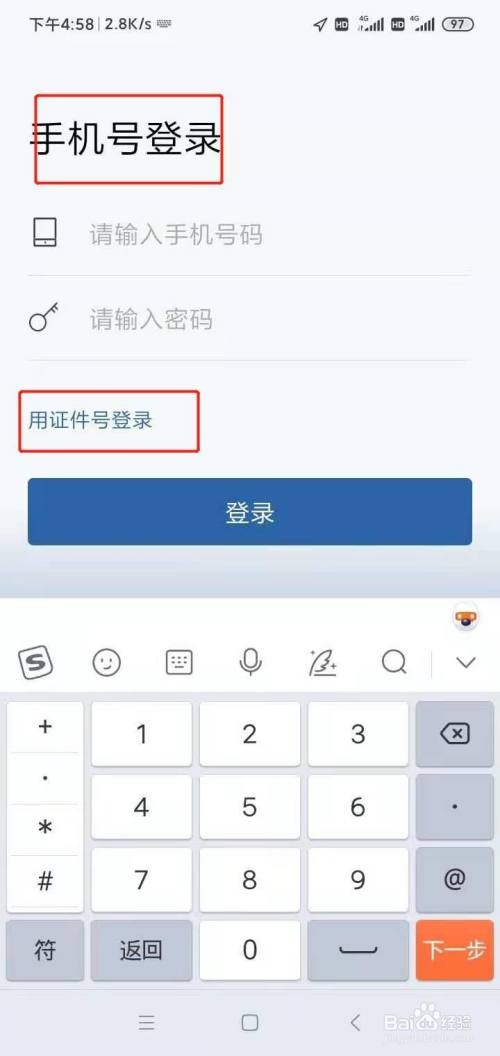 回到登录界面,使用手机号登录或者证件号码登录,然后输入密码,点击【登录】即可。