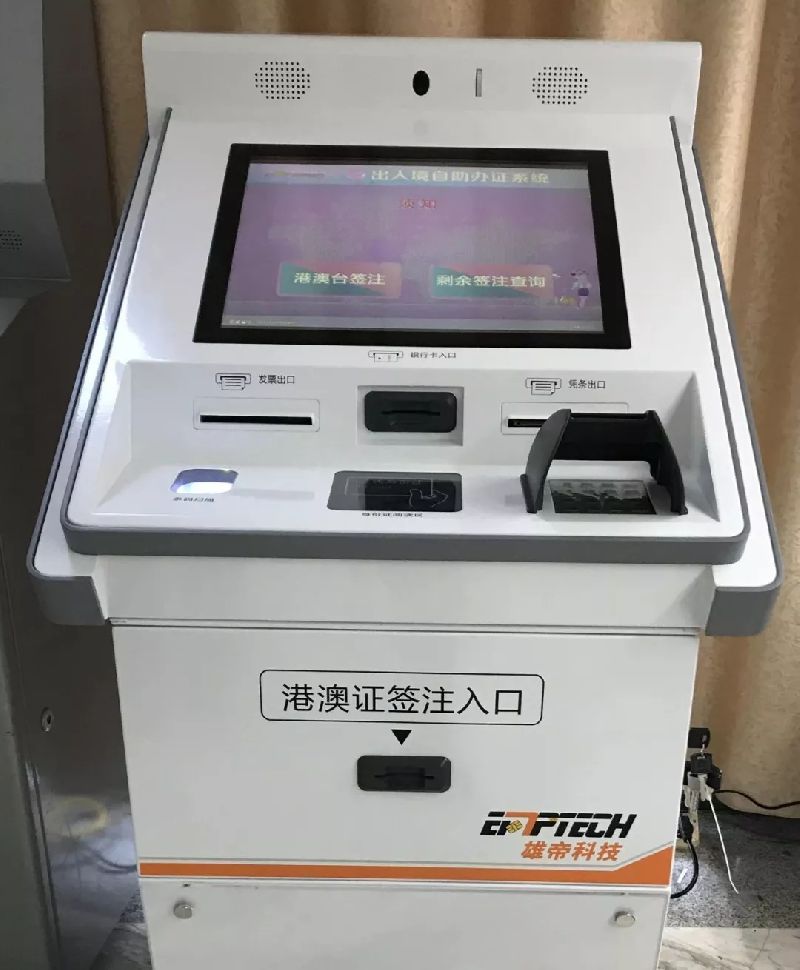 港澳台(卡式)自助签注一体机的两种功能:申请港澳台签注、查询港澳台剩余签注次数及有效期。