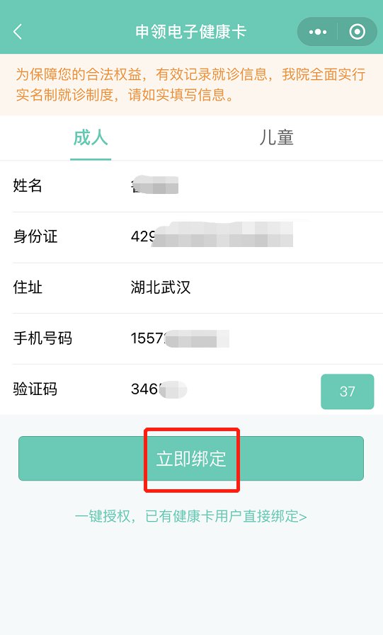 4.填写就诊人信息,获取验证码,点击“立即绑定”