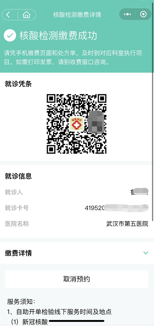武汉市第五医院核酸检测线上预约方法及核酸检测时间