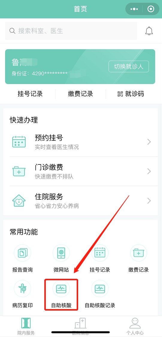 5.绑定成功,首页点击“自助核酸”