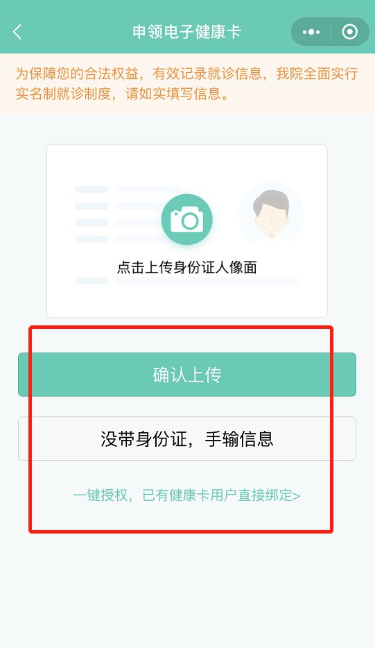 3.点击上传信息或授权直接绑定健康卡