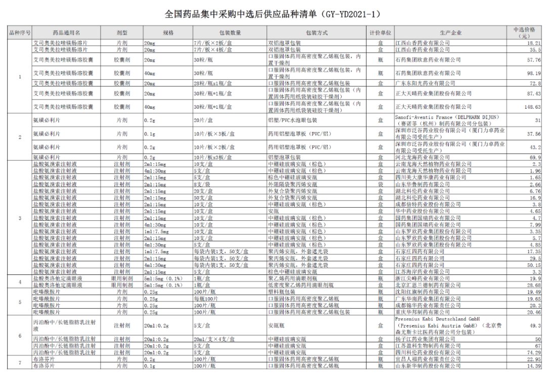 2月8日晚间,国家联合采购办公室公布了第四批全国药品集中采购的最终中选结果。此前2月3日,国家联合采购办公室曾公布拟中选结果。
