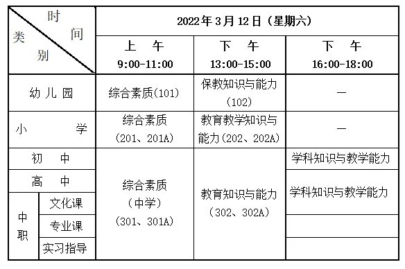 浙江台州2022上半年教资笔试考试时间安排表