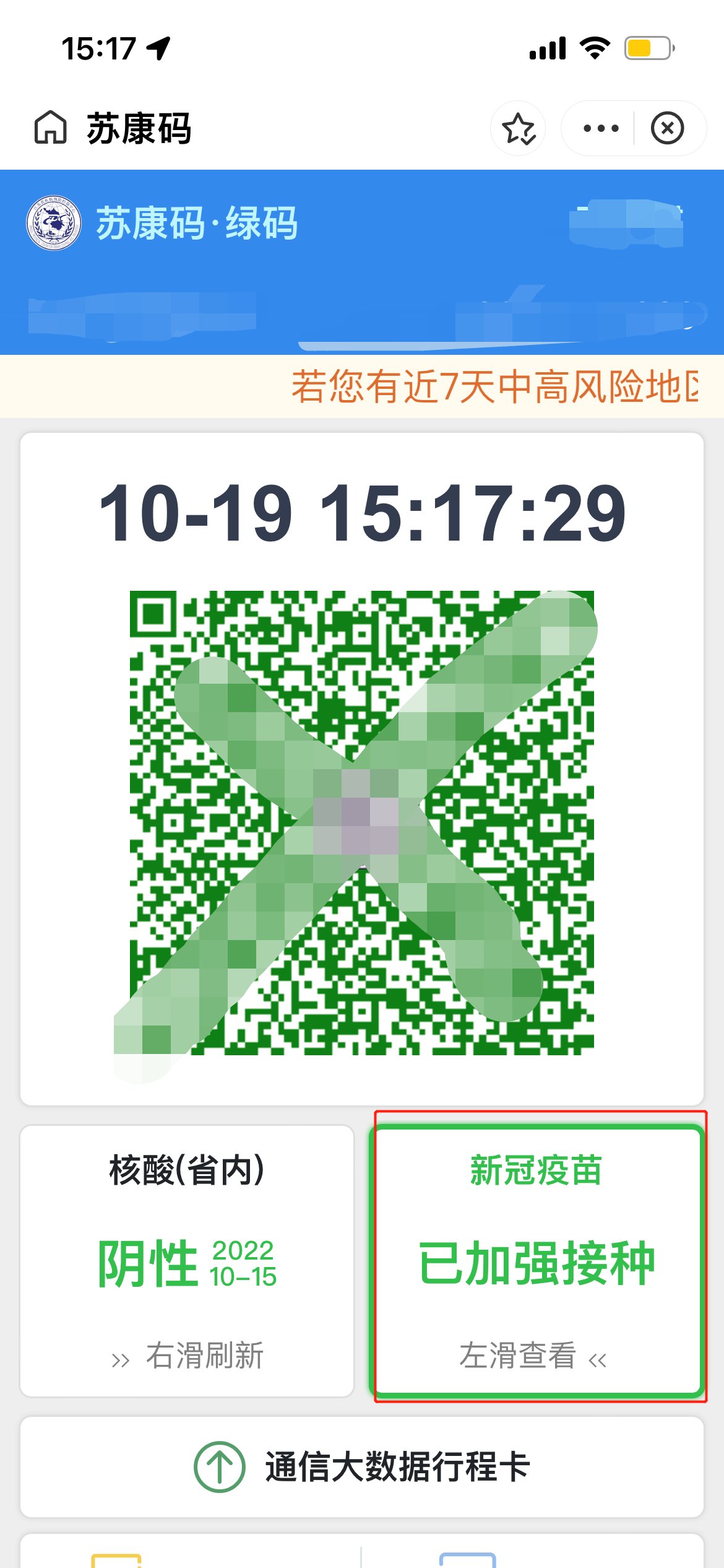 在苏康码二维码页面,点击“新冠疫苗”即可进入获取接种信息。
