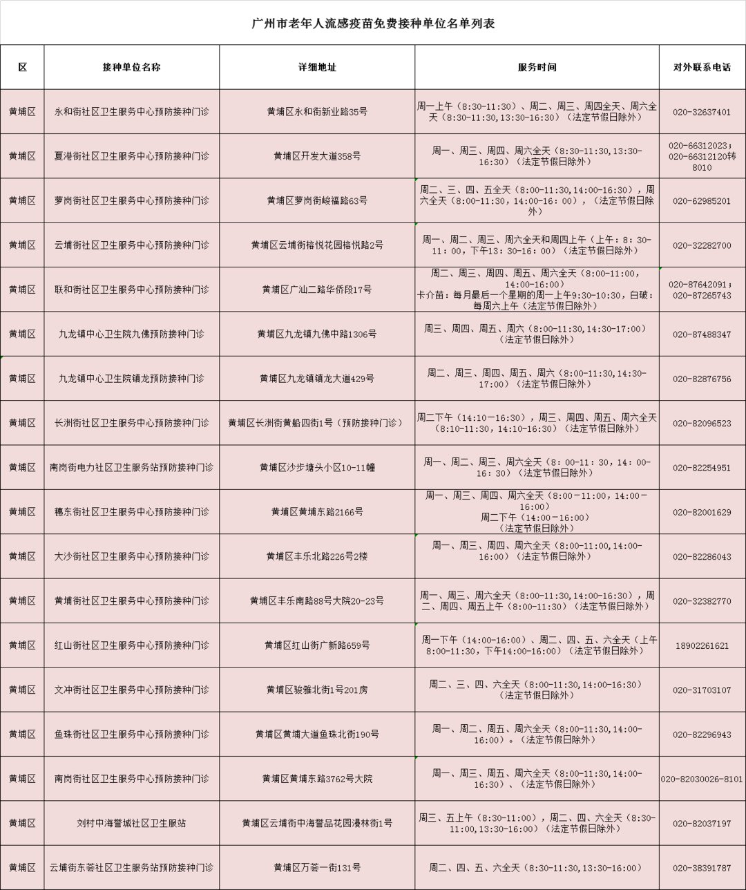 黄埔区接种地点