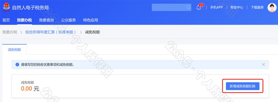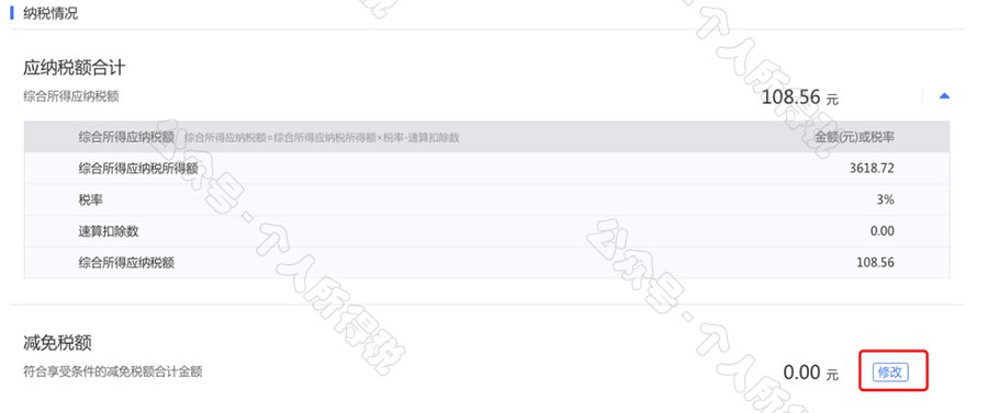 如您有减免税事项(新增残疾、孤老人员和烈属),可点击减免税额中【修改】新增相关信息。
