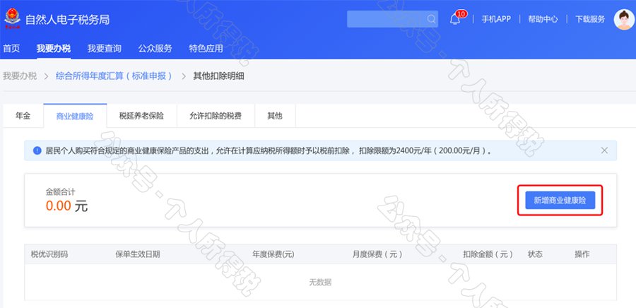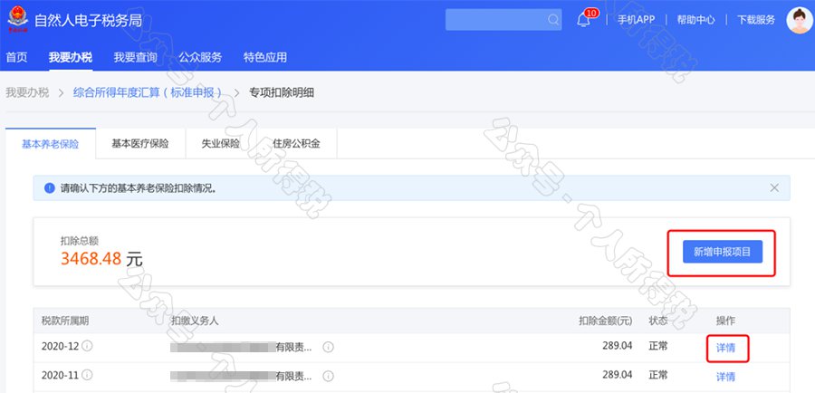 在专项扣除列表界面,您可分项目进行新增和修改。