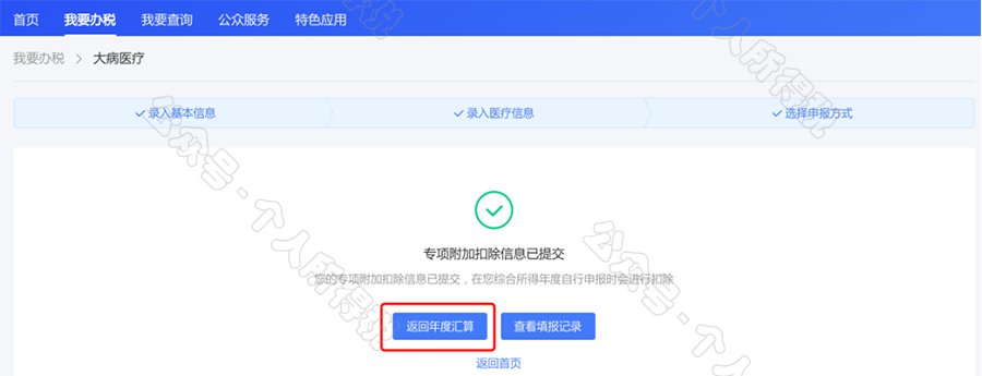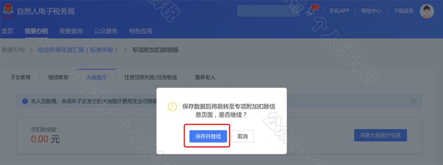 若您需要新增或修改专项附加扣除信息,可点击【采集相应扣除信息】,跳转至采集界面。填报完成后,可选择跳转回年度汇算继续填报。