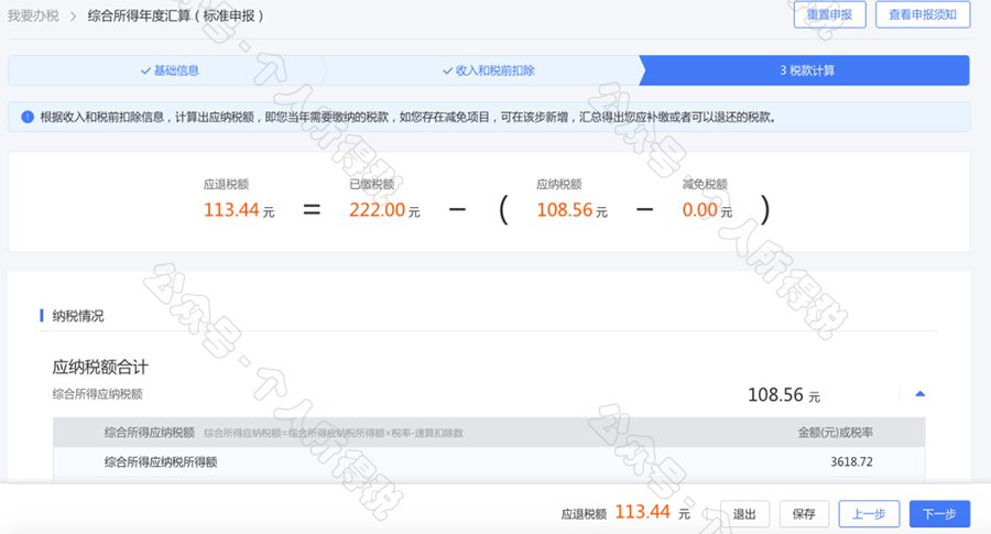 若您收入不足12万元且有应补税额,或者收入超出12万元但应补税额≤400元,申报提交后无需缴款,点击享受免申报。