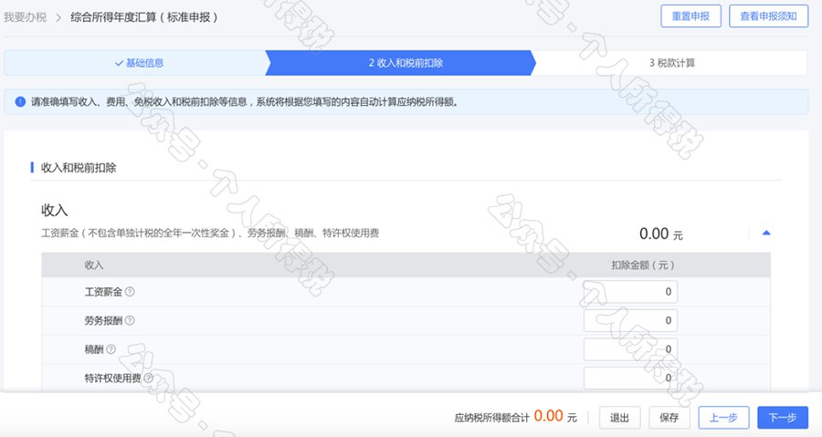 系统将自动归集您在纳税年度的收入纳税数据[工资薪金、劳务报酬、稿酬、特许权使用费],并直接进行预填至相应申报栏次。