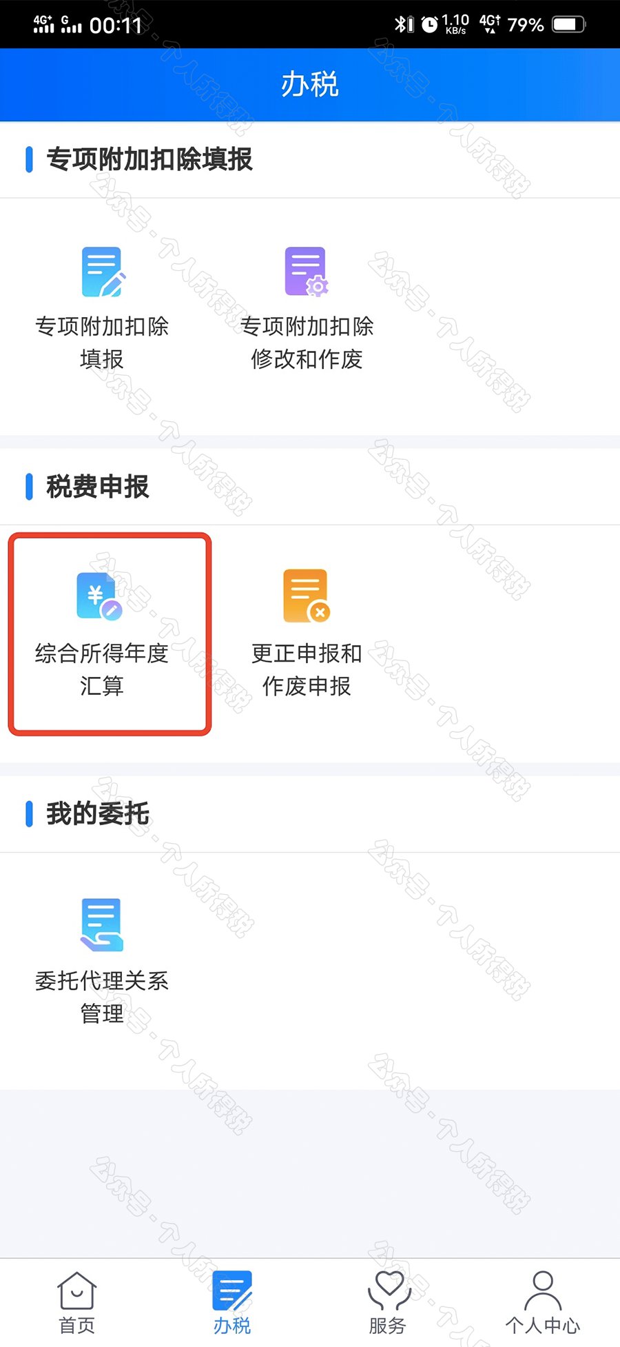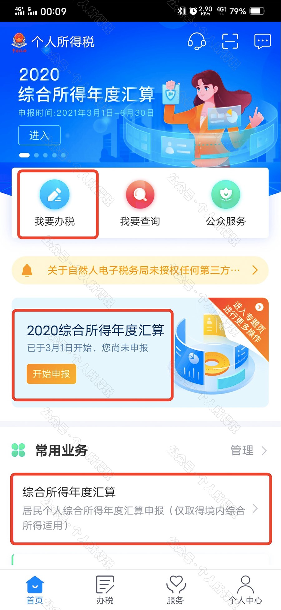 二是从首页的【常用业务】区块的【综合所得年度汇算】进入;