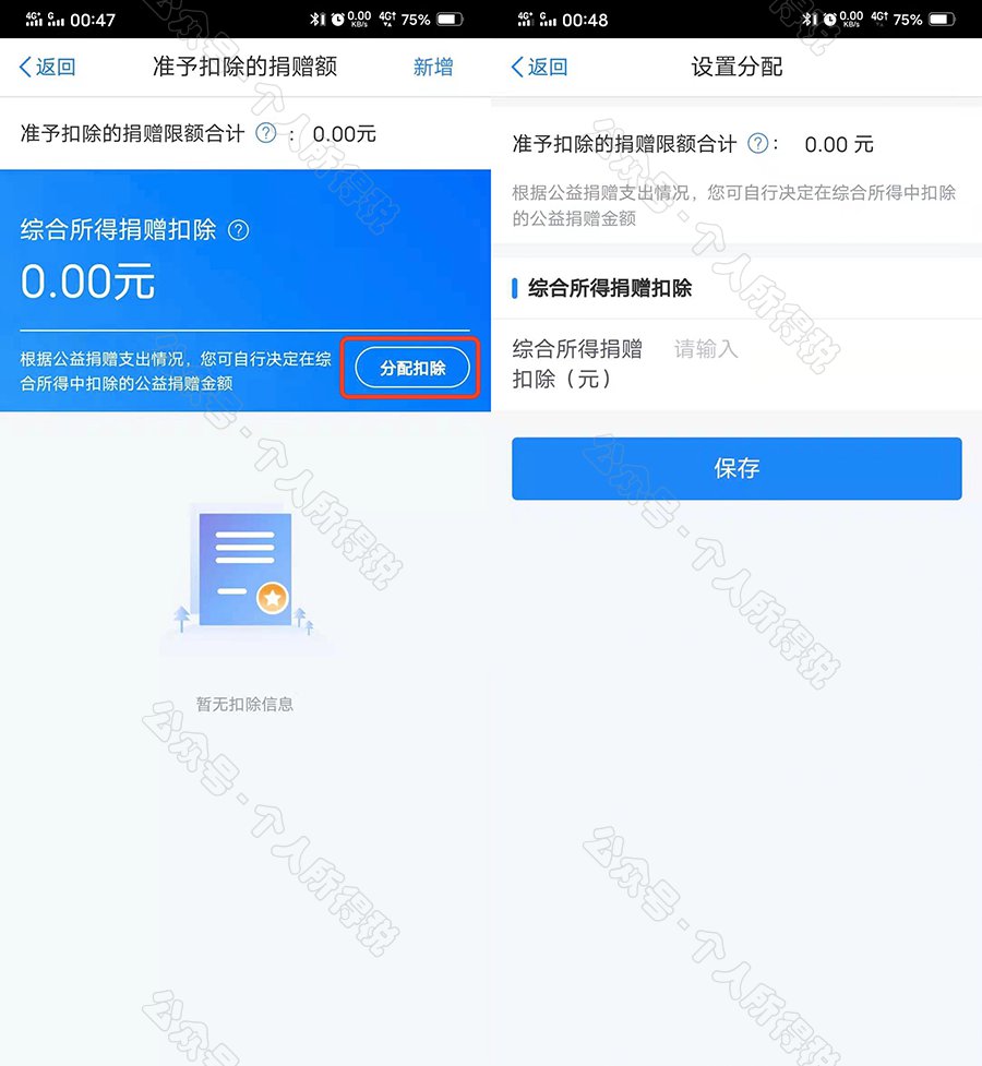 新增捐赠额后,可点击【分配扣除】设置您要在综合所得中扣除的金额。