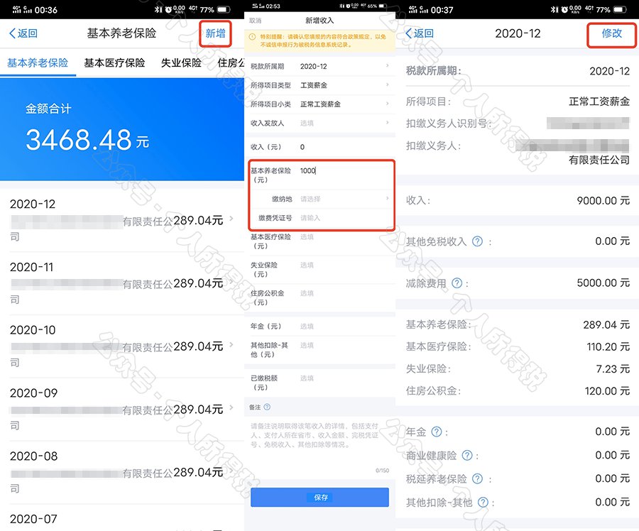 在专项扣除列表界面,您可分项目进行新增和修改。