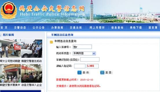 1、登陆鹤壁机动车违章网:http://www.hebijj.gov.cn/cxyw.jsp?fid=1