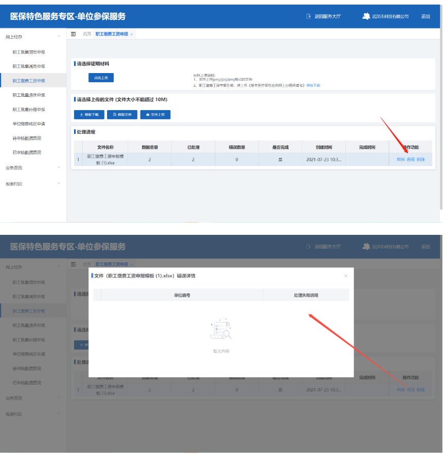 8.点击“操作功能”列里的【查看】可以查看处理错误的数据。