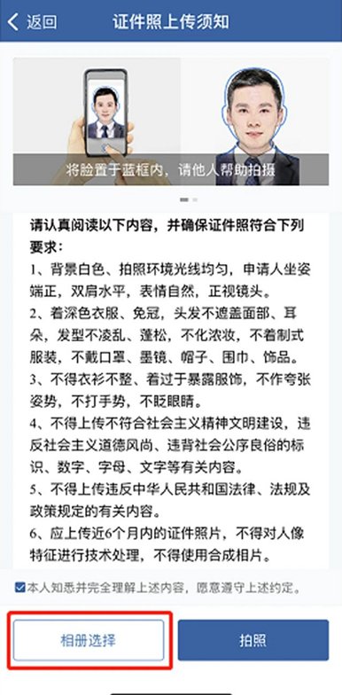 对信息系统无符合要求留存照片的,除拍照方式提交电子照片外,还可以在手机相册中选择证件照片,用于申领电子驾驶证。提交证件照片后,公安机关交通管理部门将在1个工作日内进行审核,对符合要求的,“交管12123”APP将生成电子驾驶证,并推送申请成功信息。