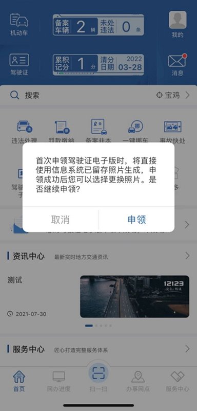 首次申领电子驾驶证时,“交管12123”APP将自动调取申请人已留存的照片作为电子驾驶证照片,电子驾驶证生成后,可以自愿选择是否更换照片。