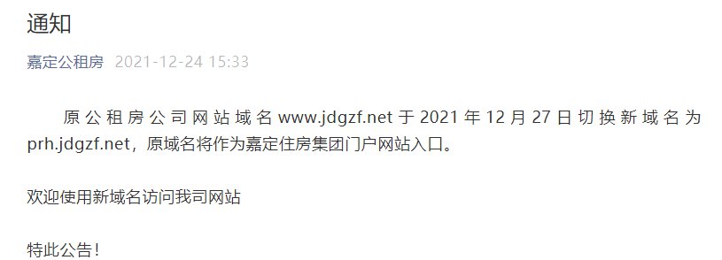 上海市嘉定区公共租赁住房运营有限公司于2021年12月24日发布公告称:原公租房公司网址域名更换,通告原文如下: