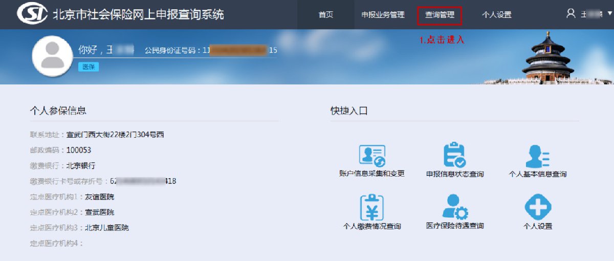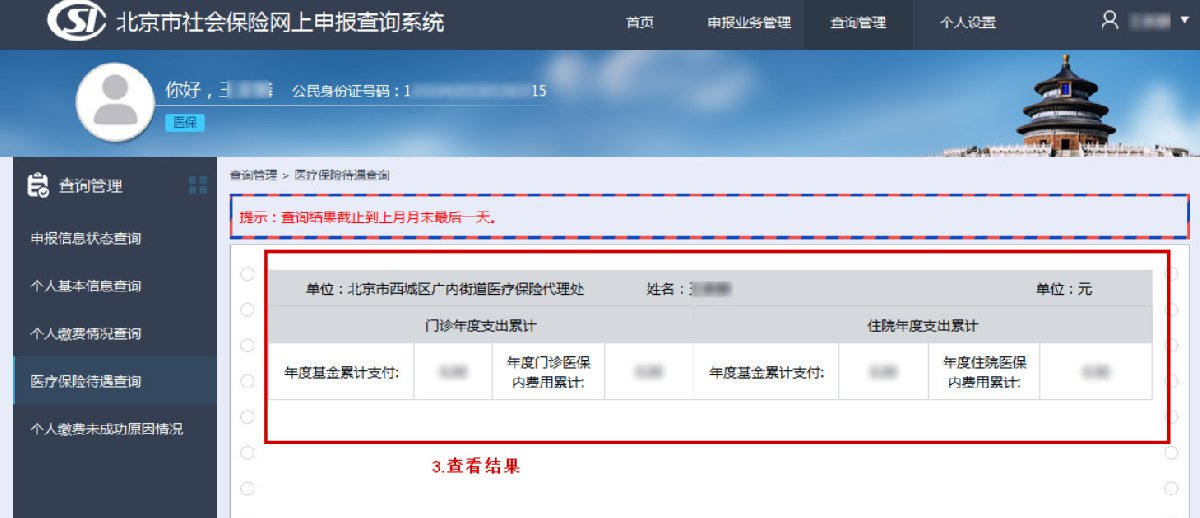 点击查询管理,点击医疗保险待遇查询进入,查看结果。
