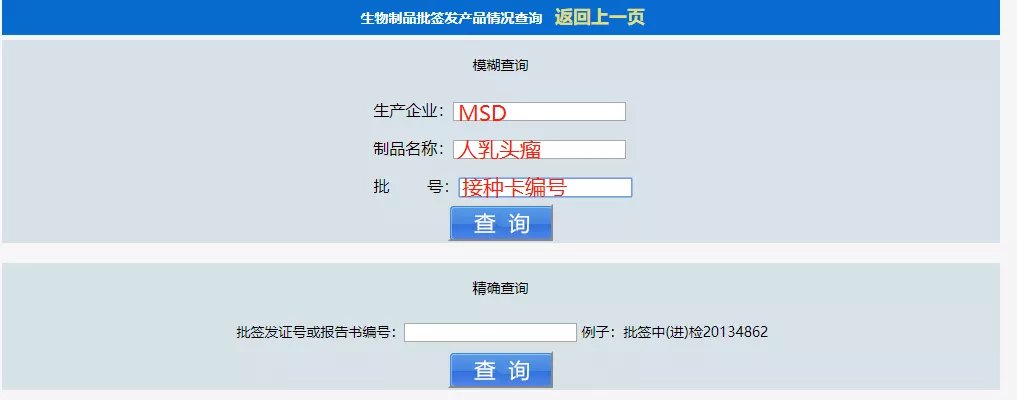查询的时候一定要遵守查询规则,生产企业要输入英文大写字母 MSD,制品名称输入 人乳头瘤,批号就是输入你接种卡上的批号。然后就能查询这一个批次的疫苗的签发情况,其实能在正规接种点打到的疫苗,肯定就是已经批准签发的。这个查询其实有一些些多余,但很多姐妹就是要查到才心安。
