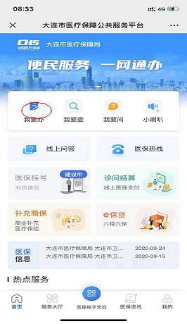 1、登录大连市医疗保障局微信公众号,点击“我要办”。